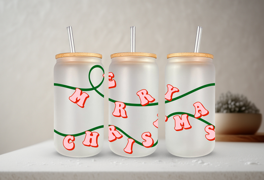 Christmas Ribbon | UVDTF | 20 oz Libbey Can Glass with Bamboo Lid & Straw
