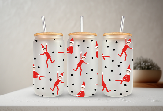 Christmas Elf | UVDTF | 20 oz Libbey Can Glass with Bamboo Lid & Straw