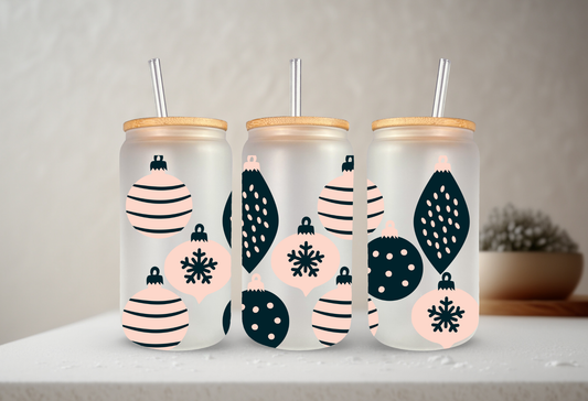 Festive Baubles | UVDTF | 20 oz Libbey Can Glass with Bamboo Lid & Straw