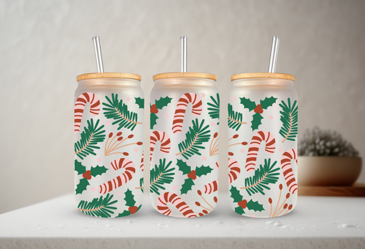 Cute Festive Vibes | UVDTF | 20 oz Libbey Can Glass with Bamboo Lid & Straw