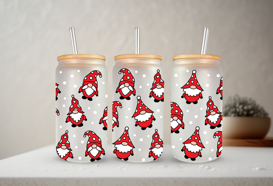 Santa Gnomes | UVDTF | 20 oz Libbey Can Glass with Bamboo Lid & Straw