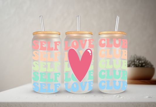 Self Love Club | UVDTF | 20 oz Libbey Can Glass with Bamboo Lid & Straw