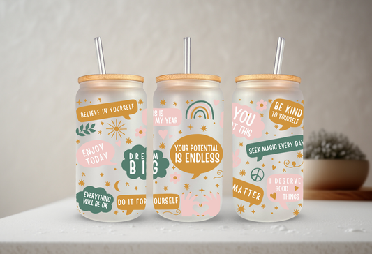 Self Love Notes | UVDTF | 20 oz Libbey Can Glass with Bamboo Lid & Straw