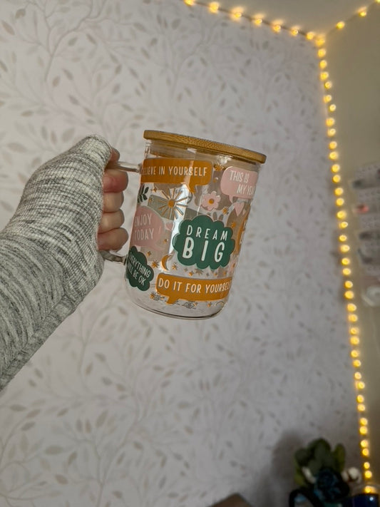Self Love Notes | UVDTF | 40 oz Glass Tumbler with Bamboo Lid & Straw