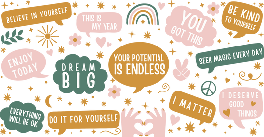 Self Love Notes | UVDTF | 15oz Mug with Handle, Bamboo Lid & Straw