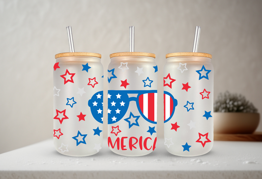 Patriotic Sunnies #merica | UVDTF | 20 oz Libbey Can Glass with Bamboo Lid & Straw