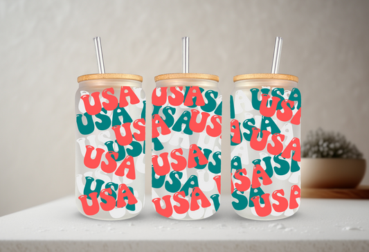 USA | UVDTF | 40 oz Glass Tumbler with Bamboo Lid & Straw