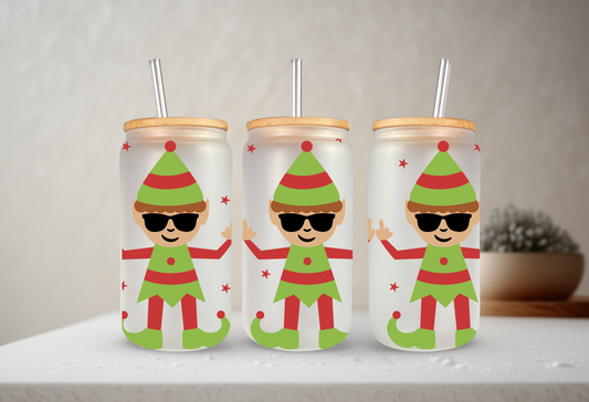 Naughty Elves | UVDTF | 20 oz Libbey Can Glass with Bamboo Lid & Straw