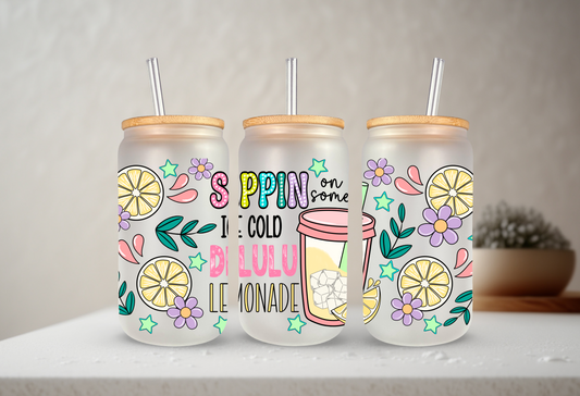Sippin On Some Ice Cold Delulu Lemonade | UVDTF | 40oz Glass Tumbler with Bamboo Lid & Straw