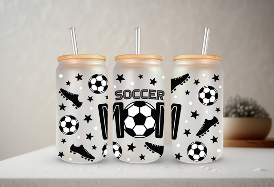 Soccer Mom | UVDTF | 20 oz Libbey Can Glass with Bamboo Lid & Straw