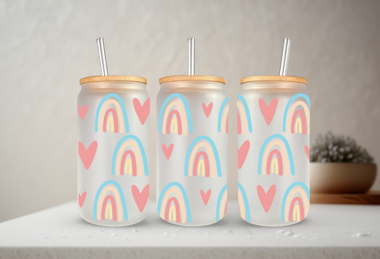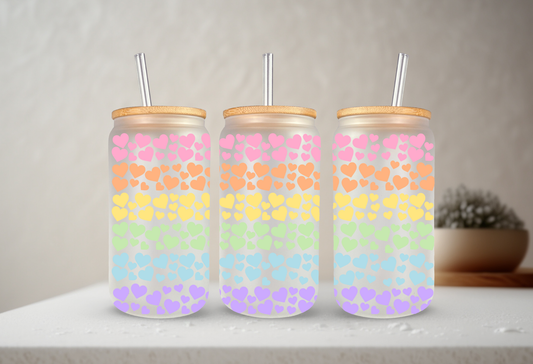 Rainbow Hearts | UVDTF | 20 oz Libbey Can Glass with Bamboo Lid & Straw