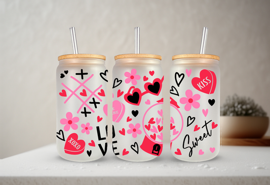 Hearts | UVDTF | 20 oz Libbey Can Glass with Bamboo Lid & Straw