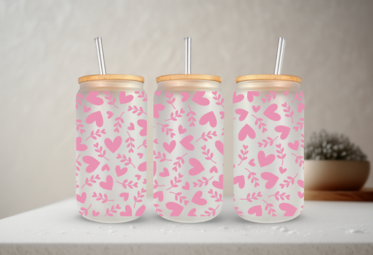 Floral Hearts | UVDTF | 20 oz Libbey Can Glass with Bamboo Lid & Straw