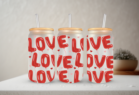 Love Balloons | UVDTF | 20 oz Libbey Can Glass with Bamboo Lid & Straw