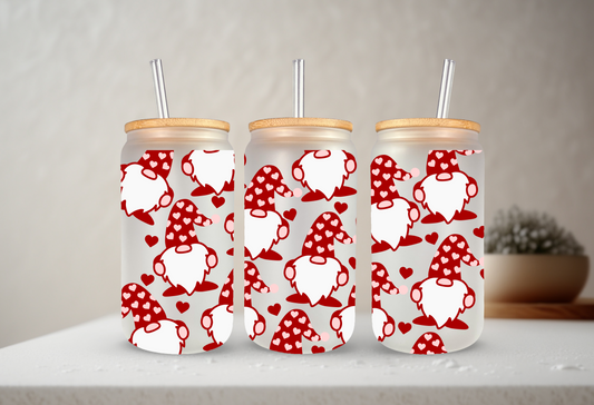Valentine's Gnomes | UVDTF | 20 oz Libbey Can Glass with Bamboo Lid & Straw