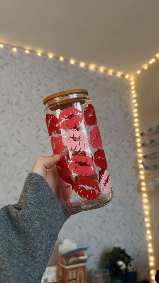 Kisses | UVDTF | 20 oz Libbey Can Glass with Bamboo Lid & Straw