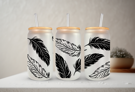 Feathers | UVDTF | 20 oz Libbey Can Glass with Bamboo Lid & Straw