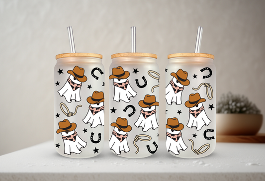 Cowboy Ghost | UVDTF | 20 oz Libbey Can Glass with Bamboo Lid & Straw