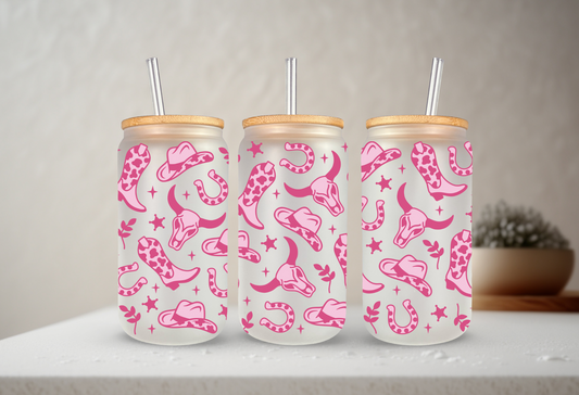 Cowgirl | UVDTF | 20 oz Libbey Can Glass with Bamboo Lid & Straw