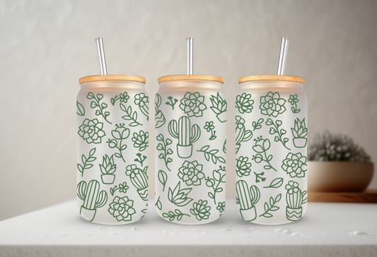 Cactus | UVDTF | 20 oz Libbey Can Glass with Bamboo Lid & Straw