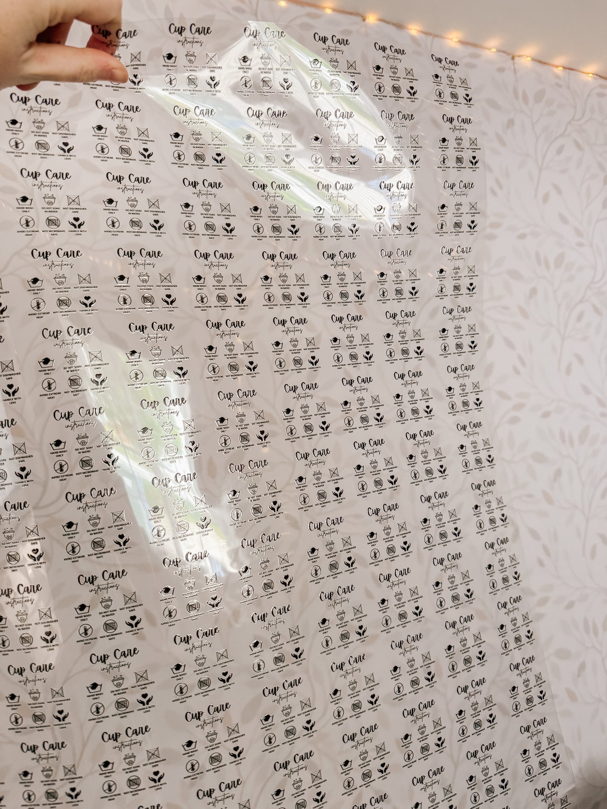 Keep your handmade cups looking their best with our UVDTF Cup Care Instructions Decal! This 1.625" square decal is perfectly sized to fit popular glass cup sizes including 16oz, 20oz, 25oz, and 40oz. Designed for smooth, long-lasting application, this decal adds a professional and polished touch to your finished tumblers and glassware.