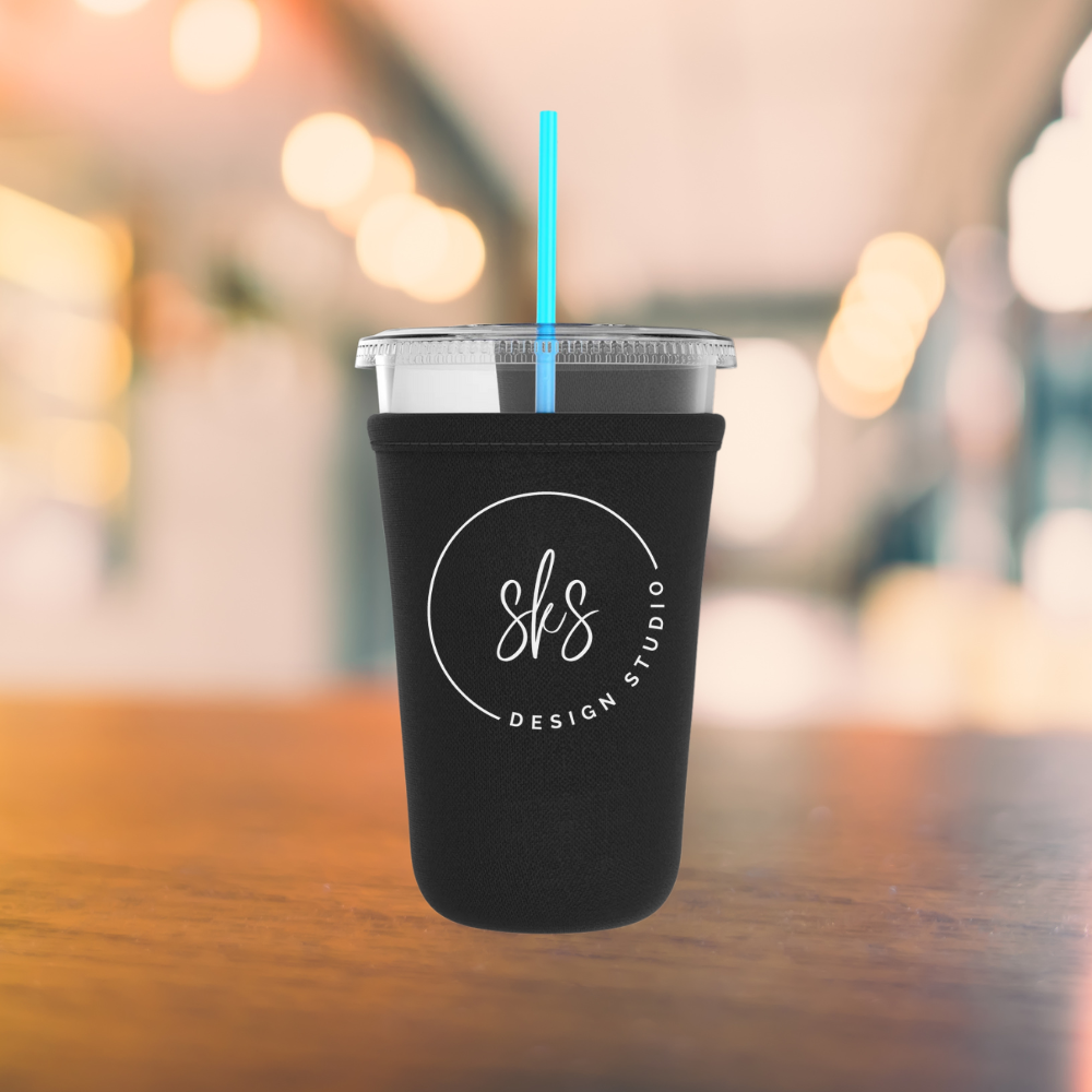 This neoprene sleeve is made to fit 22–24 oz cold drinks—perfect for Dunkin’, Starbucks, and local coffee shop runs. Keep your hands dry, your drink cool, and your branding on point.
