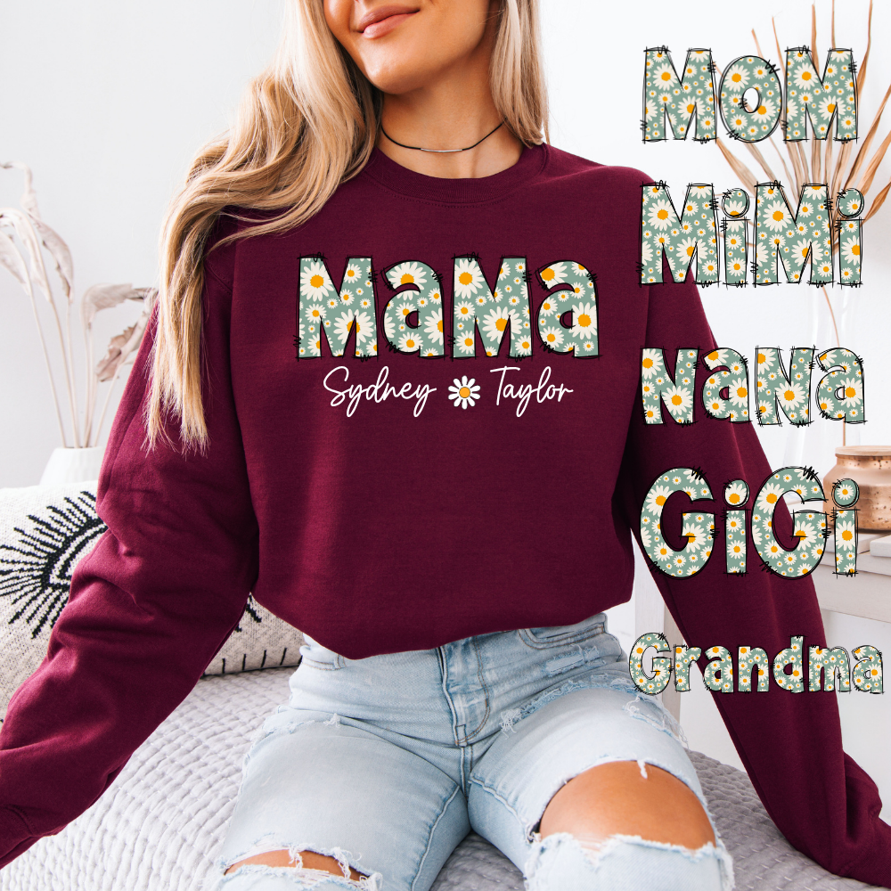PERSONALIZED Floral Daisy Mama, Mimi, Nana, Gigi, Grandma | Unisex Crewneck Sweatshirt