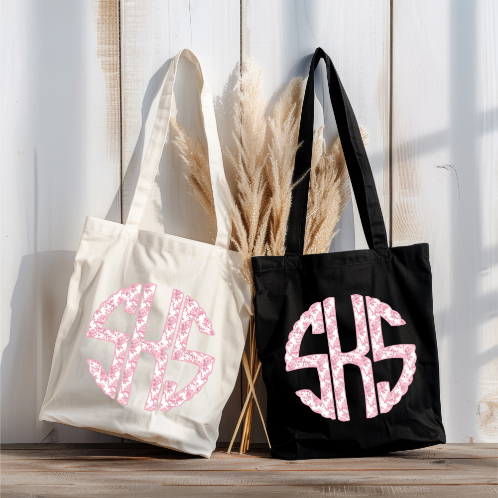 Pink Chinoiserie Monogram | Canvas Tote Bag
